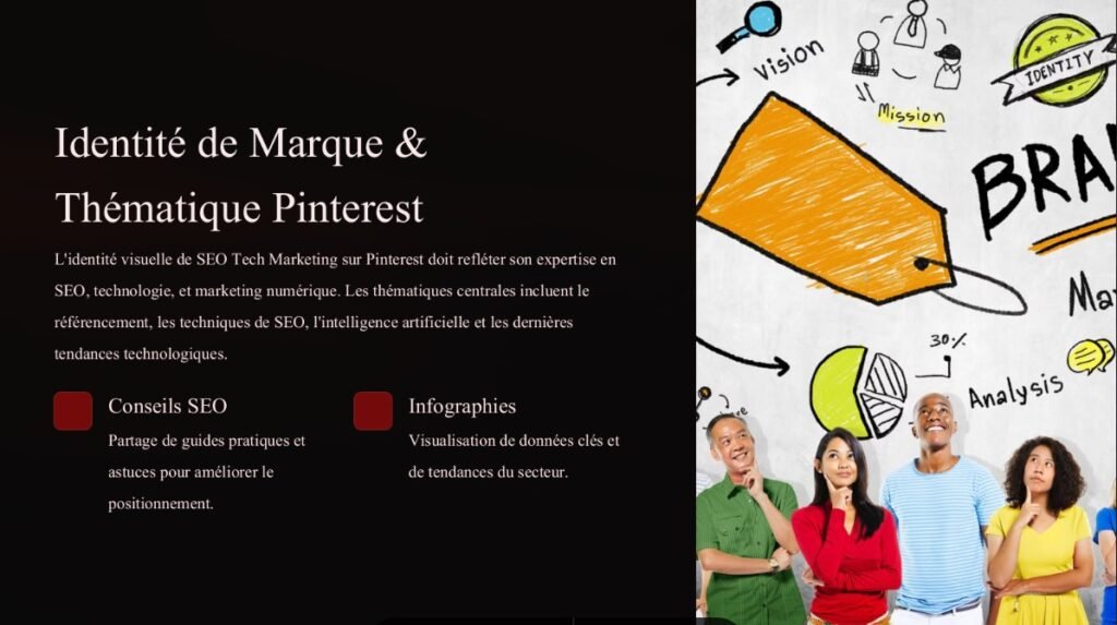 Amplifier la présence de SEO Tech Marketing sur Pinterest via une stratégie de contenu ciblé, visant à démontrer l’expertise SEO, engager l’audience tech, et générer des leads qualifiés.